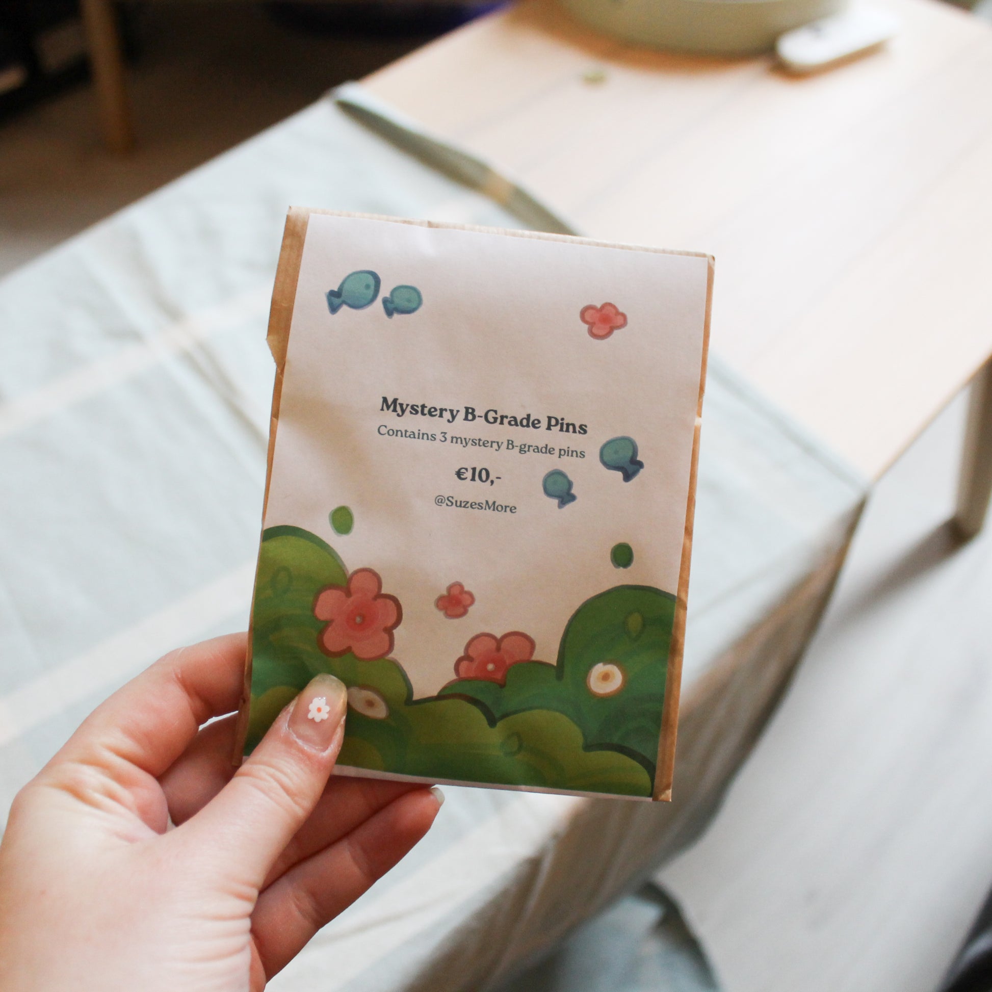 can be pins from patreon or the regular shop. B-grade means they have small imperfections. Like dents, skretches etc.